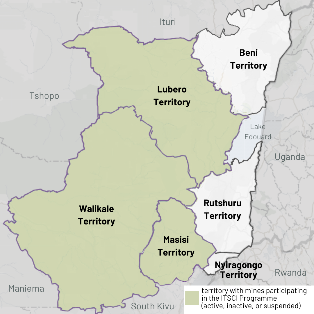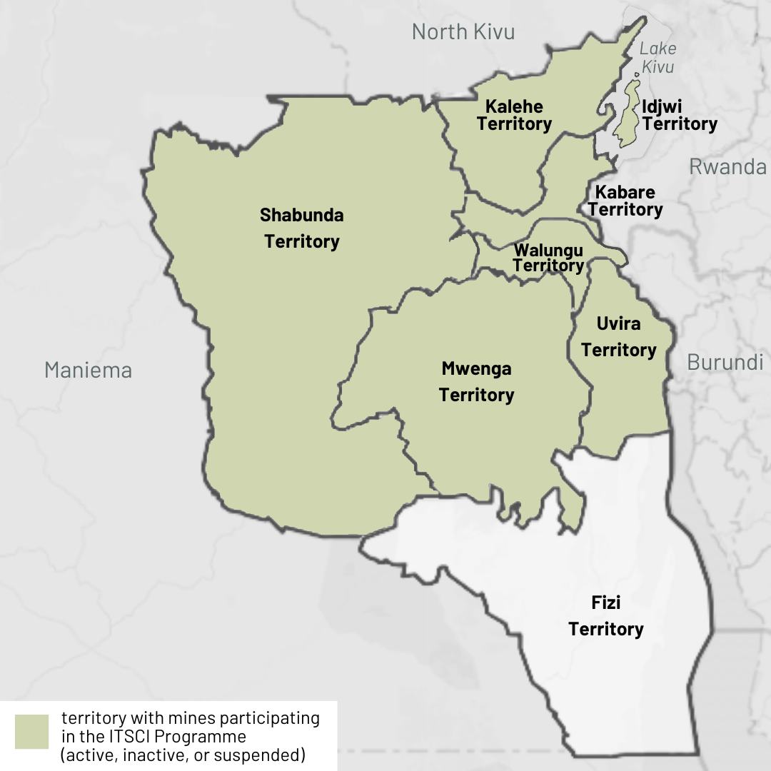 The territories of Kabare, Mwenga, Walungu, and Shabunda, are under control of the DRC government, with the presence of multiple Wazalendo non-state armed groups fighting alongside, and sometimes against, the Congolese Army (FARDC). In Walungu territory, clashes between those groups and M23 non-state armed groups also continue to be reported. Instances of violence, illegal taxation along mineral transport routes and mineral fraud are being reported. ITSCI follows up on these issues via the ITSCI incident reporting mechanism.